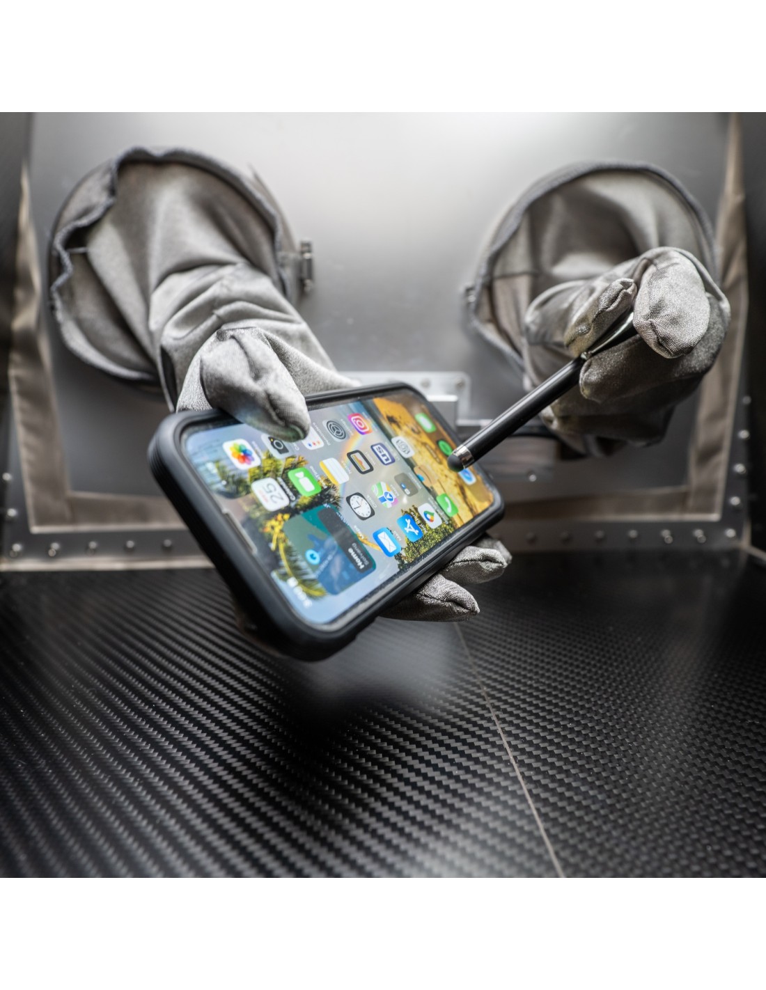 Elle permet d’isoler totalement un smartphone, une tablette ou un ordinateur portable de tout signal radio tout en conservant la possibilité de l’exploiter, de le manipuler et d’extraire ses données.