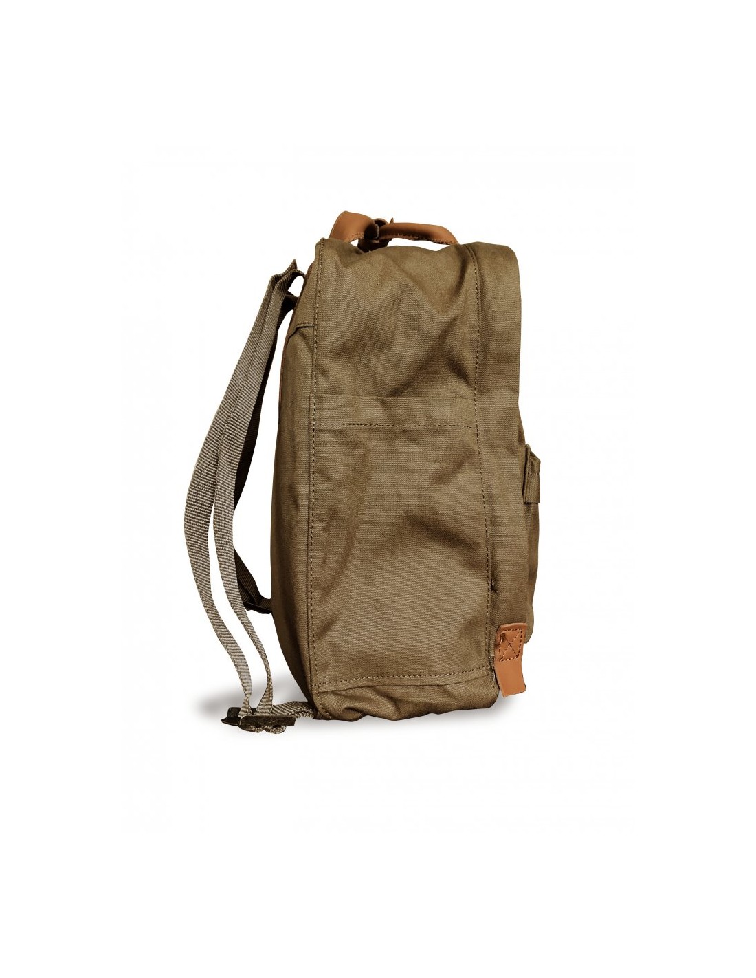 Le Sac à dos Cavestock No. 66 est fabriqué en toile légère avec des garnitures en cuir véritable. Il peut être porté en sac à dos ou en tote bag grâce à ses doubles poignées cuir en partie haute reliées par une sangle à pression.