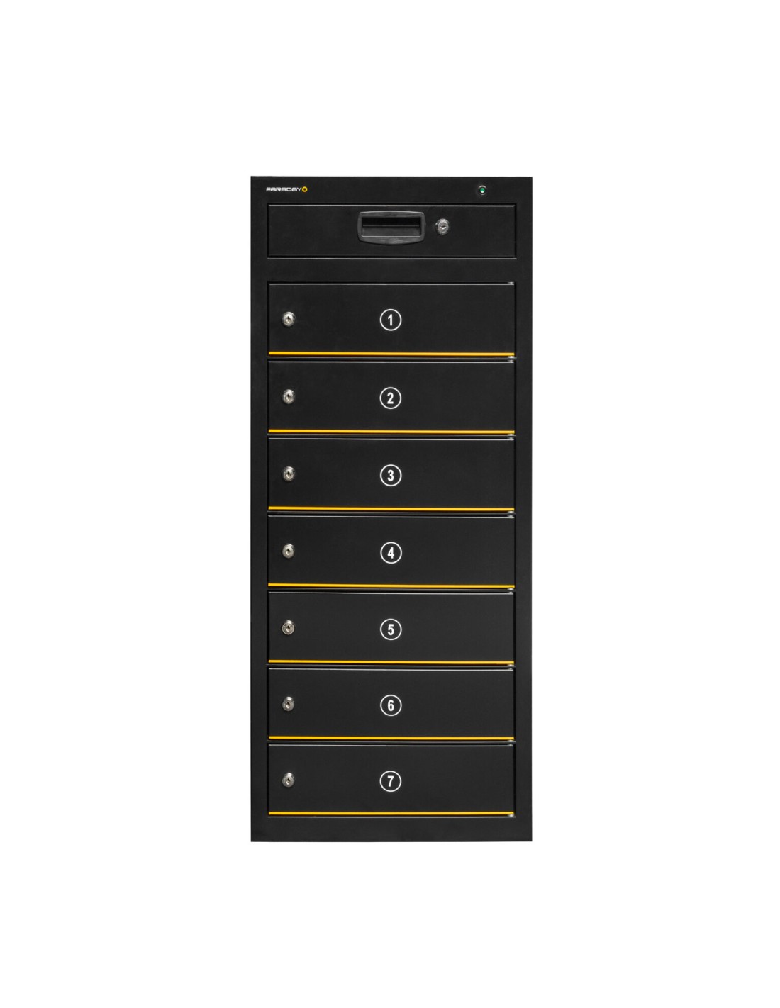 L'armoire se compose de 7 compartiments individuellement numérotés, chacun équipé de :